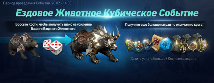 Приветствуем, покорители мира Lineage 2 Revolution! С новым обновлением разработчики приготовили для нас и новые события! Одно из них — это Кубическое событие Ездового животного. Вы должны будете выполнить определенные условия для получения очков. Эти очки будут использованы для броска кубика в игре. Смысл ивента очень прост — бросаем кости и получаем награду.Для того, чтобы поучаствовать этом событии, вам необходимо зайти в Меню -> События -> Награда за событие Вы кидаете кости, и в зависимости от того, какое число у вас выпало, вам присуждается та награда. Каждый день вам дается 2 бесплатных броска кубиков. Все остальные броски платные и стоят 100 очков. Движение происходит по часовой стрелке и продолжается с той клетки, где вы остановились. Чтобы получить эти очки, надо быть активным в игре. В зависимости от ваших действий, дается разное количество очков необходимых для бросков. Ниже представлена таблица с описанием получаемых очков. Количество получаемых очков для броска за определенные действия.