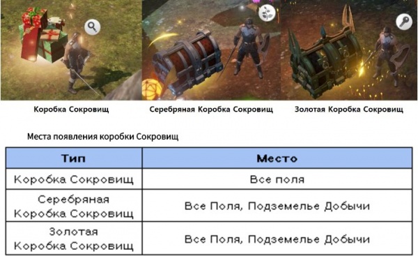 Коробки с сокровищами появляются на Всех Полях и в Подземелье Добычи.