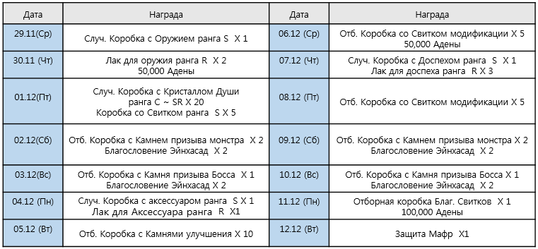 29.11 00:00 ~ 12.12 23:59 (GMT)
